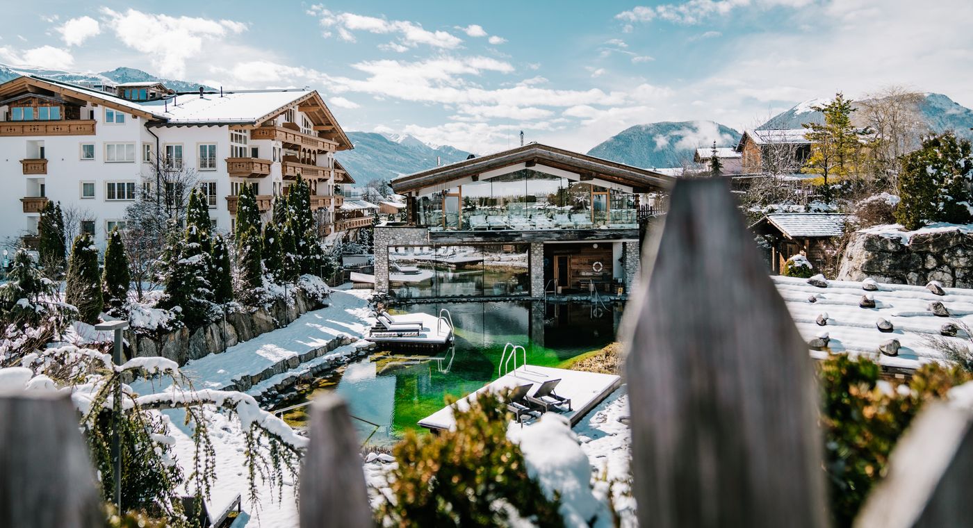 - Zugang zum Saunadorf mit zahlreichen Saunen, warmem Sauna Pool und Bergsee
