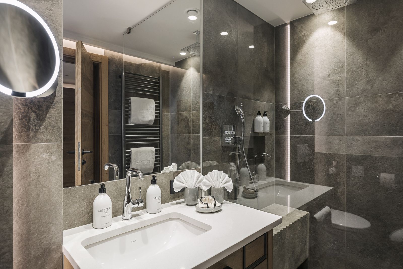 ca. 22 m², Holzboden, kleine Sitzecke, Minibar, TV-Radio, Badezimmer mit Waschtisch, Dusche und WC (ca. 4,5m²)