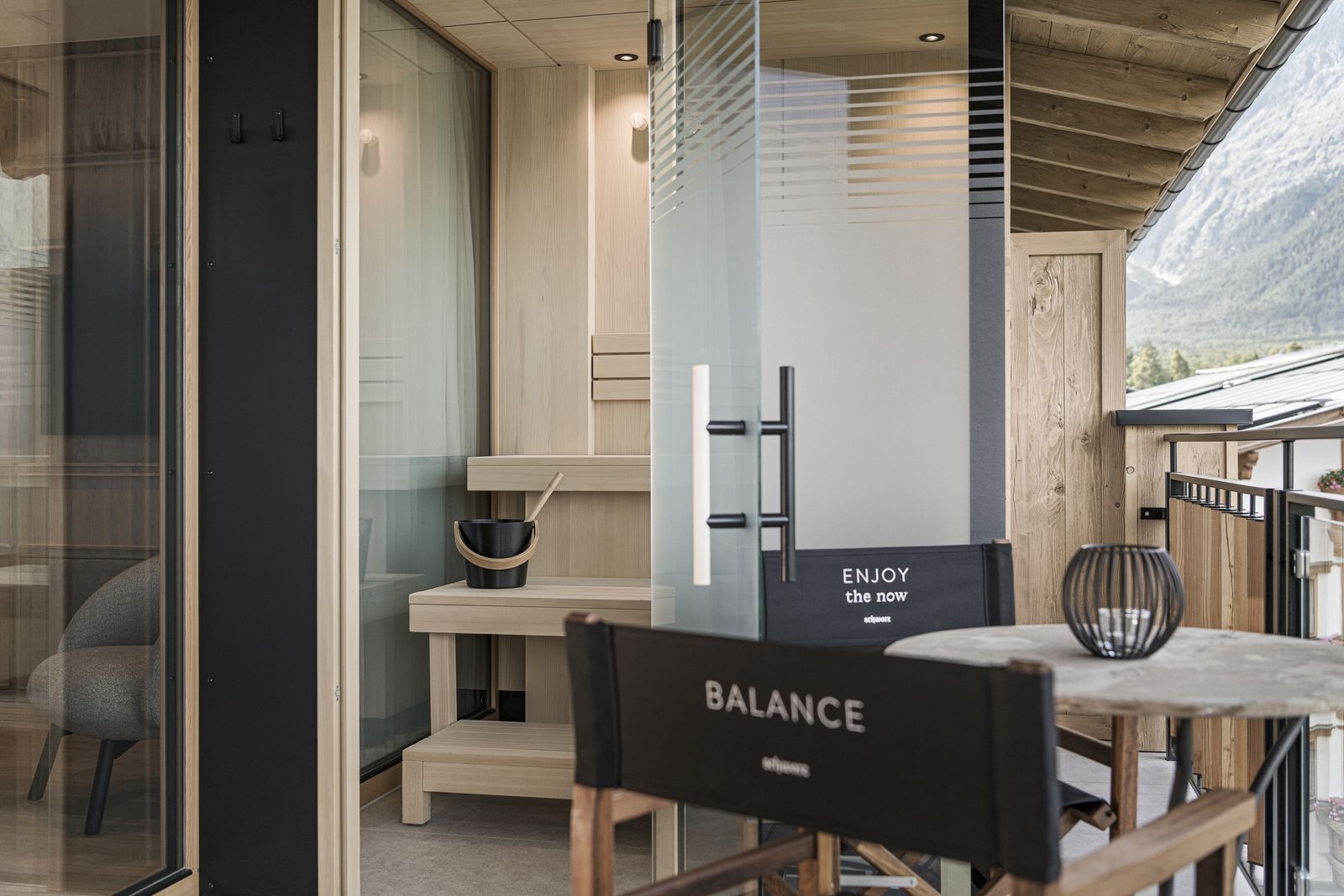 Panorama sauna cabin with infrared therapy.